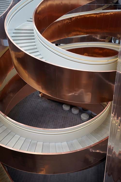 Portaat on suunnitellut CEBRA Architecture ja rakentanut CSK Stålindustri A/S. AE Stålmontage A/S oli vastuussa portaiden päällystämisestä kuparilla. Portaiden päällystämiseen käytettiin noin 10 tonnia TECU Classic -kuparia, joka levitettiin portaisiin 0,7mm paksuiseksi kerrokseksi. Portaiden pinta sekä suunnittelu luovat yhdessä upean näyn, joka tervehtii vieraita ensimmäisenä, kun he astuvat sisään rakennukseen.